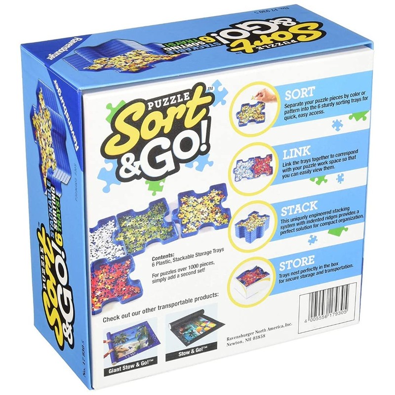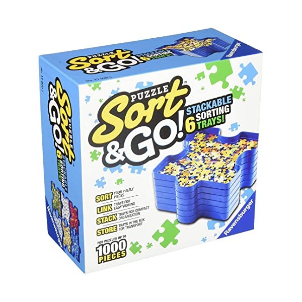 Sort & store your puzzle pieces with Puzzle Sort & Go. from Ravensburger. Sort your puzzle pieces by color and then link the trays for easy viewing. All 6 trays can be stacked and stored in the box for compact organization and easy transport.