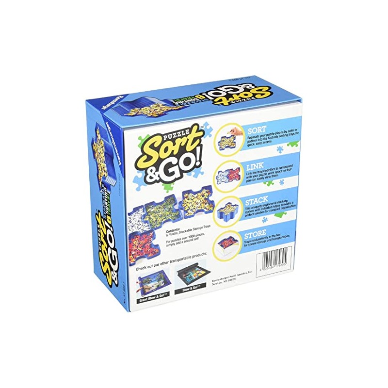 - What you get - The Sort and Go puzzle accessory includes 6 stackable sorting trays and is a great organizer for jigsaw puzzles up to 1000 pieces and makes a great gift for puzzle lovers of all ages. Each tray measures 7.5" x 6.5" x 0.75".
