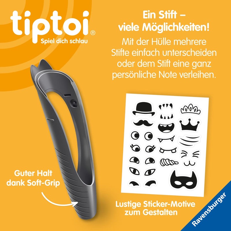 - With the pen case and the included stickers, design the tiptoi pen according to your own wishes. This replacement case made of soft grip material replaces the orange original in just a few simple steps.