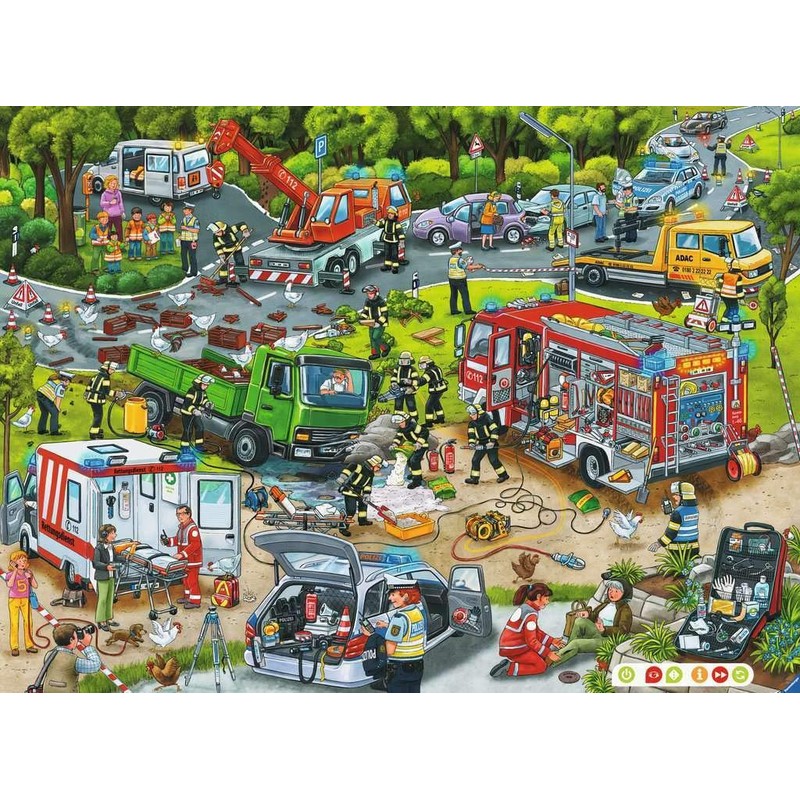 - Once the puzzle is fully assembled, it can be played with the tiptoi pen. The pen makes the scene come alive and lets the child immerse themselves in an exciting deployment of various rescue workers.