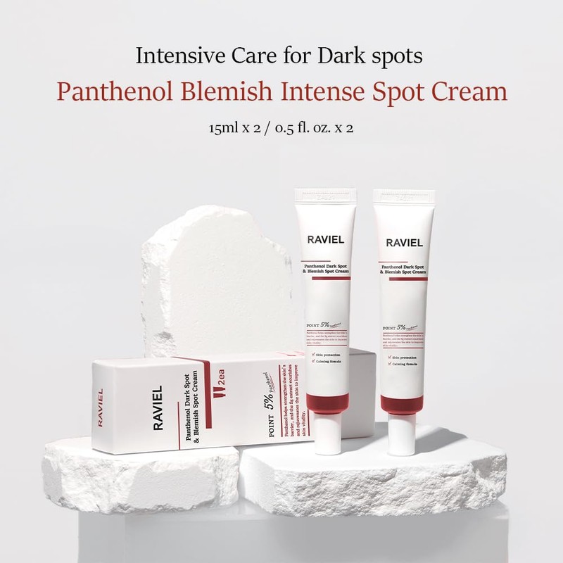 - RAVIEL Panthenol Spot Cream for intensive care of freckles and blemishes.