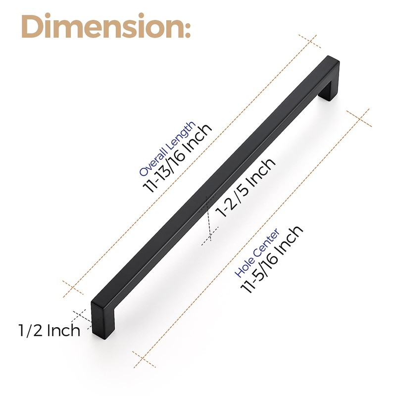 Ravinte 10 Pack 11-5/16 Inch Kitchen Square Cabinet Handles Matte Black Cabinet Pulls Black Drawer Pulls Kitchen Cabinet Hardware Kitchen Handles