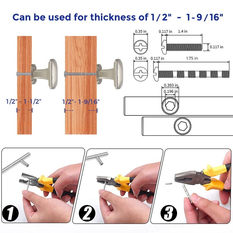 - Size of Square Knobs:Diameter 1-1/4" ; Base Diameter: 3/4" ; Height: 31/32"