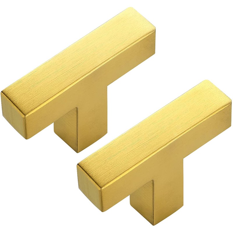 Ravinte 20 Pack Gold Square Bar Cabinet Knobs 2 Inch Square Cabinet Handles Brushed Brass Single Hole Kitchen Cabinet Pulls