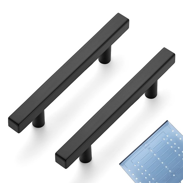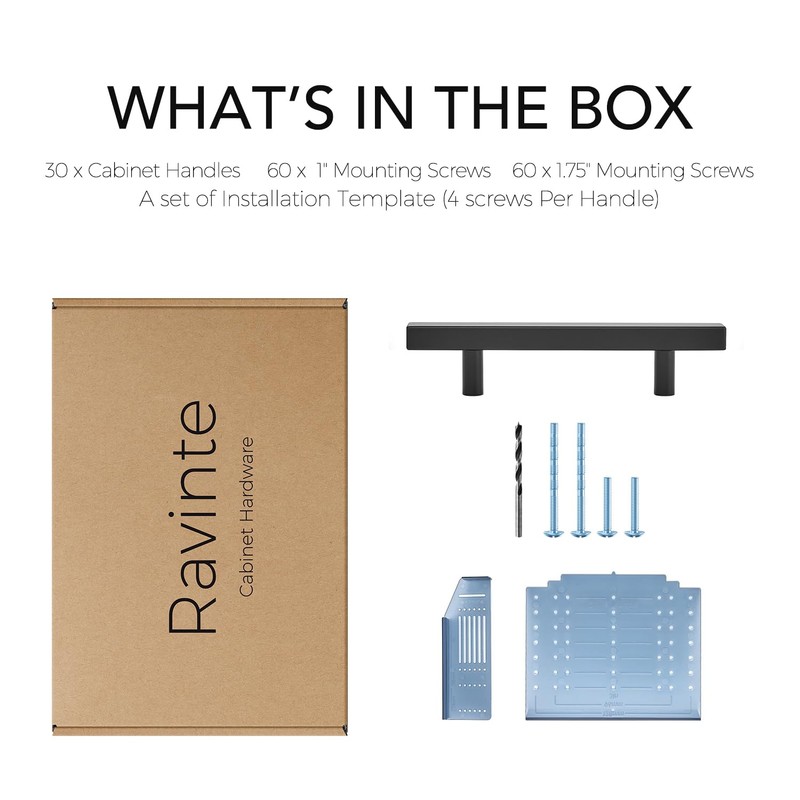 Ravinte 30 Pack 3-3/4 Inch Cabinet Pulls Black Sqaure Kitchen Cabinet Handles Black Cabinet Hardware Stainless Steel Drawer Pulls 6 Inch Overall Length with Mounting Template