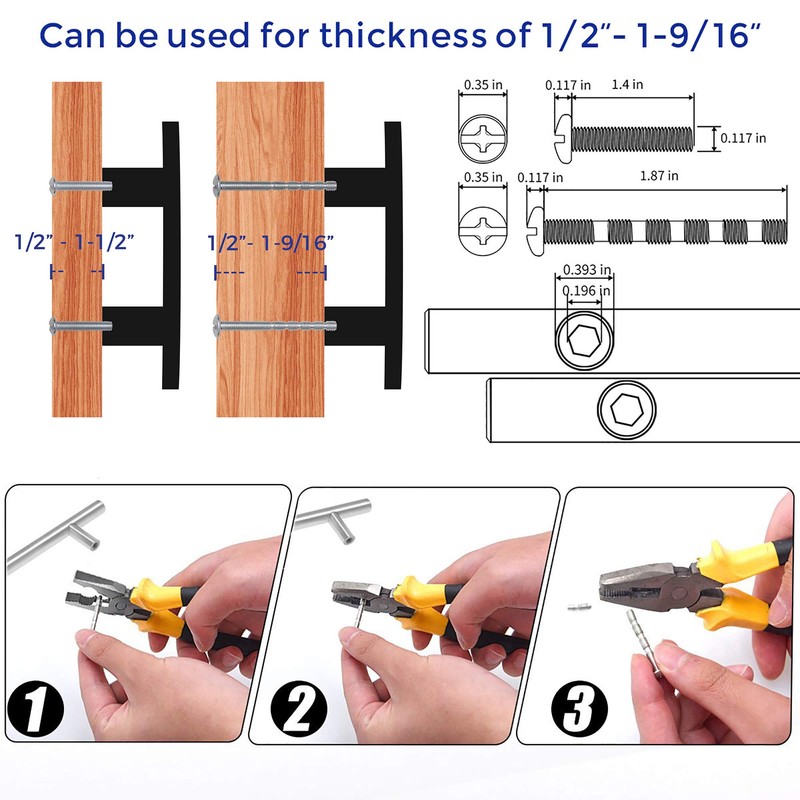 - If you're replacing your handle, measure and ensure the center to center hole spacing of the current handle is 3 inches(76mm). Installing new cabinet handles, drill two holes with center to center spacing of 3 inches(76mm)
