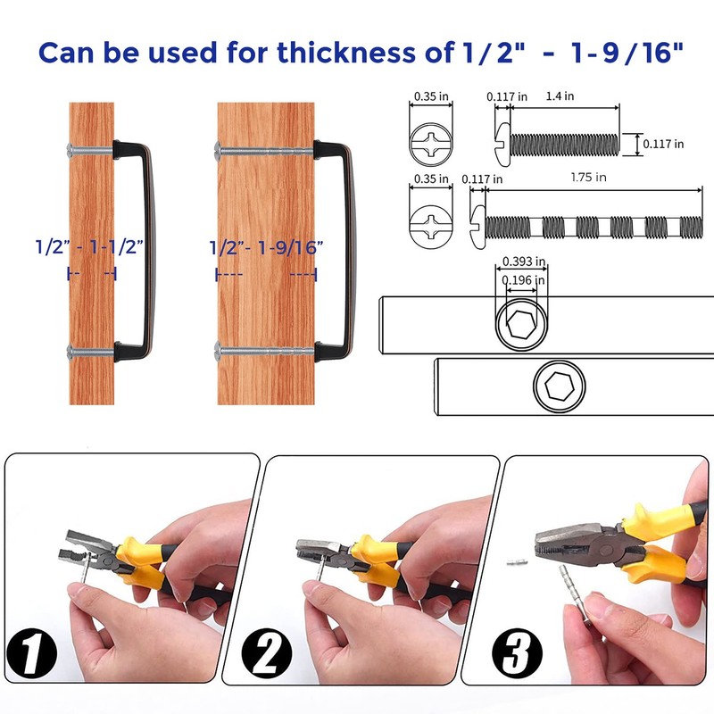 - If you're replacing your handle, measure and ensure the center to center hole spacing of the current handle is 5 inches(128mm). Installing new cabinet handles, drill two holes with center to center spacing of 5 inches(128mm)