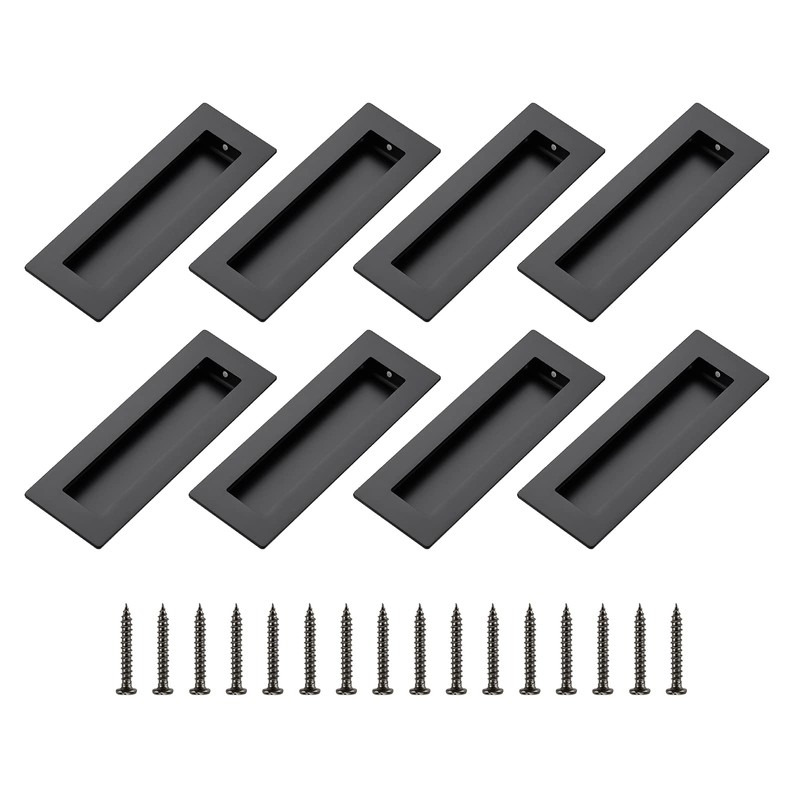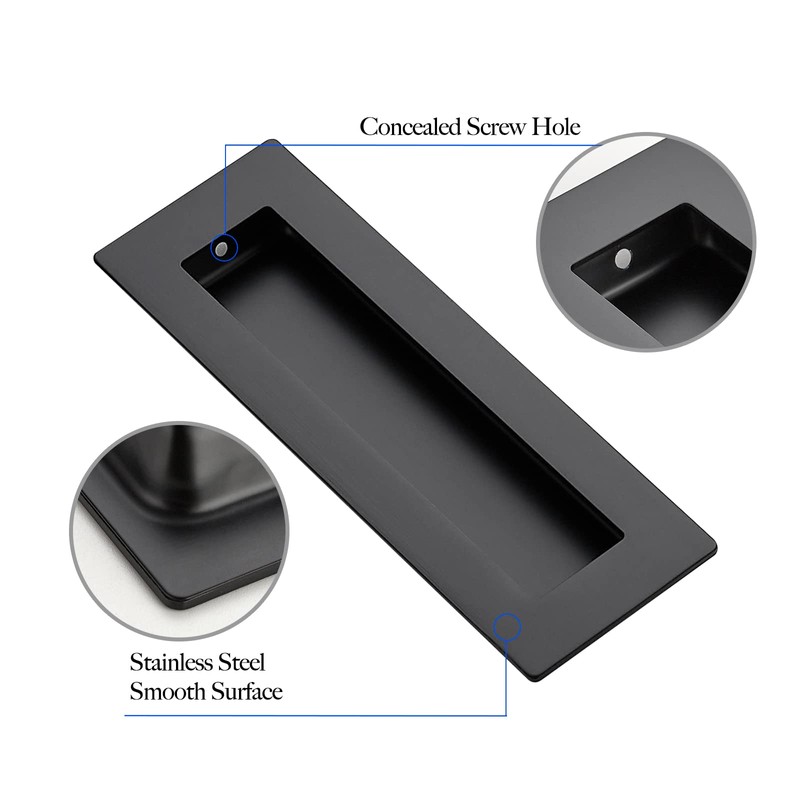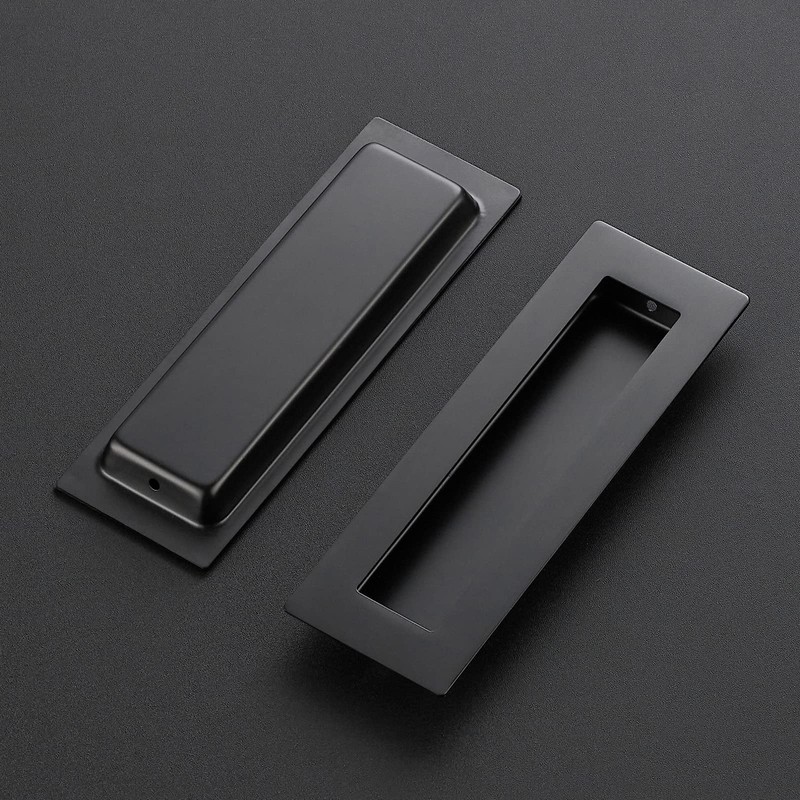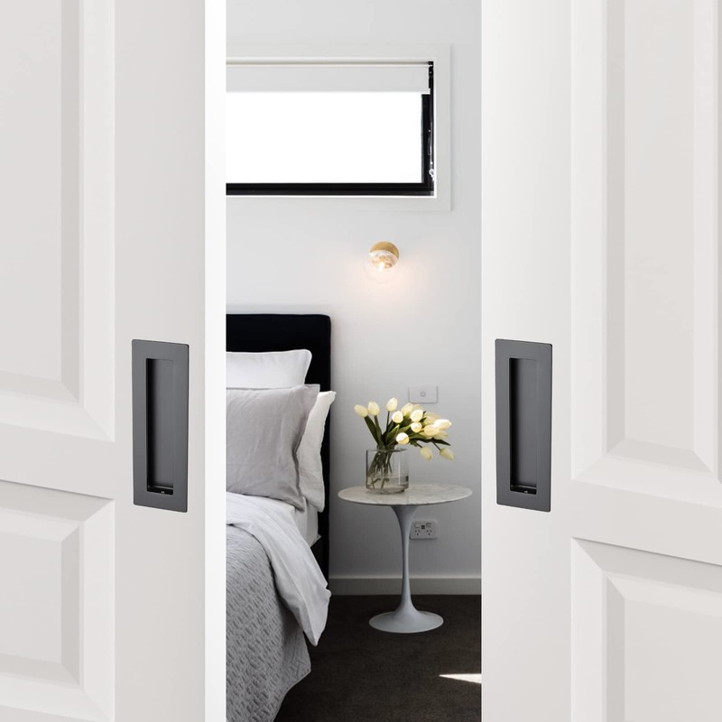 - MODERN SQUARE DESIGN - The simple and modern design of the matte black recessed door handle is ideal for most ofiInternal and external doors: pocket doors, sliding Barn doors, bi-fold doors applications and also ideal for cabinets, furnitures and kitchen applications.