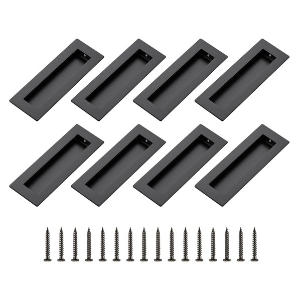 Ravinte 8 Pack Black Sliding Closet Door Handles Black Flush Pulls 5.9in Length Recessed Finger Pulls for Sliding Barn Door Sqaure Cabinet Pulls Stainless Steel