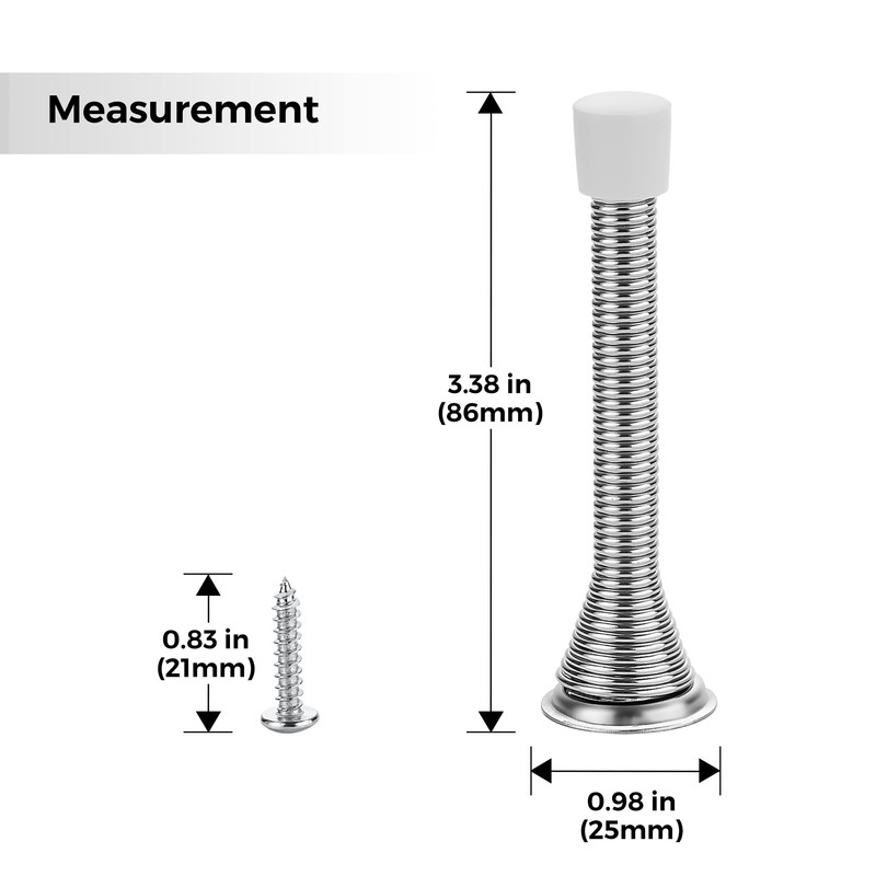 - Dimension - Base diameter: 0.98" (25mm), Length of black door stop: 3-2/5"(86mm), Length of screw: 0.82in(21mm)