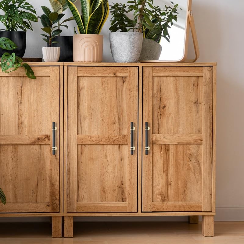 - What's in the set: It including 15 PCS matte black & gold kitchen pulls for cabinets and furniture. And each kitchen cabinets handles come with 2 PCS 1 inch screws and 2 PCS 1-3/4 inch breakaway screws. The screw size is M8-32