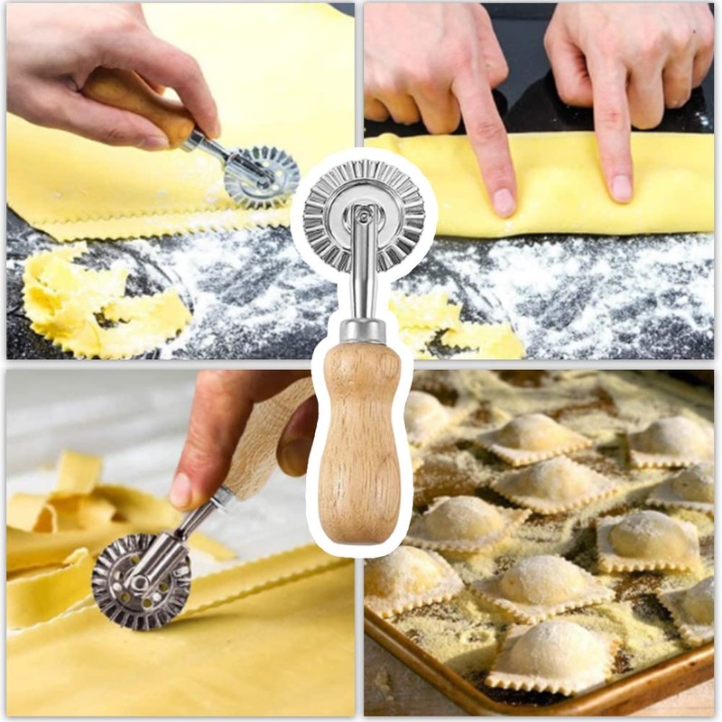 - 【Application】This product is versatile and is used for a variety of delicious tortellini, pie meat, biscuit or cheese fillings. The rollers can be used to cut biscuits, pasta and noodles with a fluted edge to provide precise cuts.