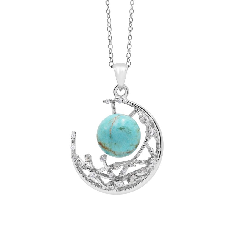 - Verfügt über einen leuchtenden runden Türkisstein von 9 mm, gepaart mit funkelnden Akzenten aus weißem Topas. Der Anhänger ist 27 mm lang, 19 mm breit und 10 mm hoch, 5 g, mit einer silbernen Basis und einem Gewicht von 3,8 g.