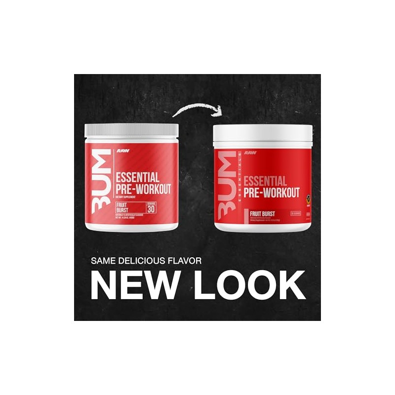 🌟 ⭐ RAW Nutrición - Fórmula esencial para antes del entrenamiento de Chris Bumstead, polvos de nutrición deportiva para preentrenamiento | Bebida para hombres y mujeres, polvo energético para entrenar (Fruit Burst) ⭐ 🌟