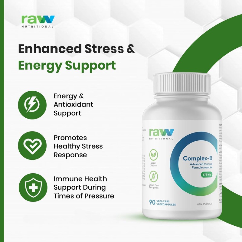 Raw Nutritional Vitamin B Complex | Advanced Formula B Complex Vitamin Supplement | Essential Nutrients, Energy Support, Reduce Stress & Fatigue | 90 Capsules