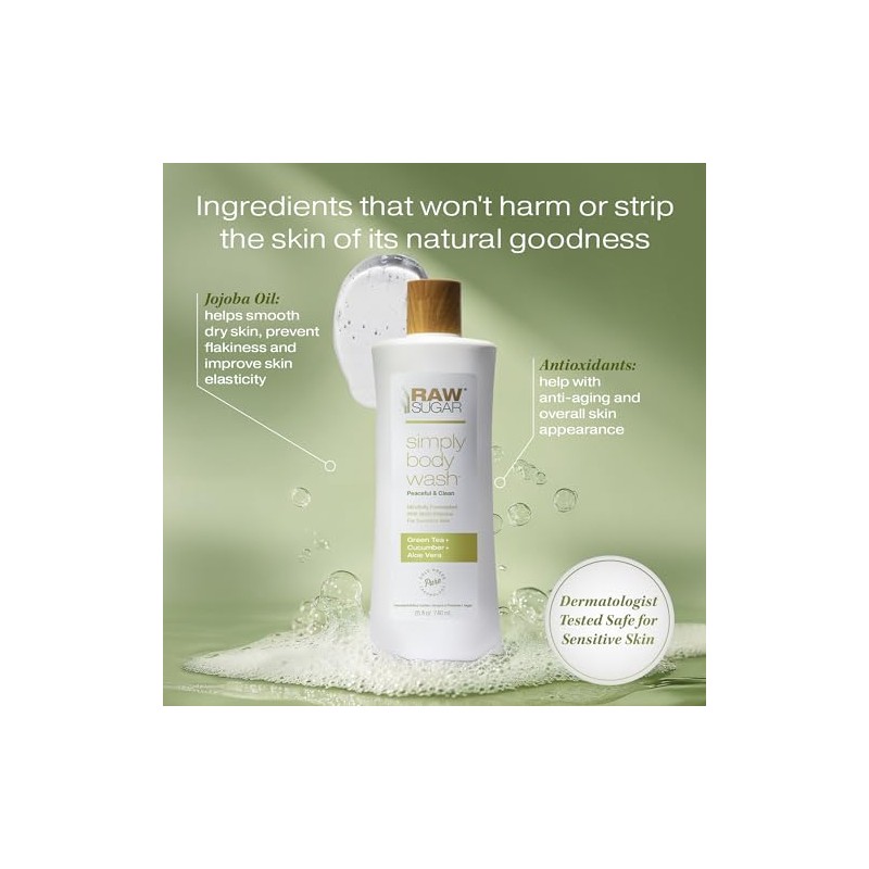 Raw Sugar Sensitive Skin Green Tea Cucumber and Aloe Vera Natural Body Wash 25oz, pack of 1