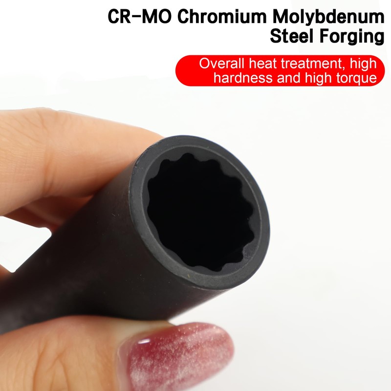 - High-quality material: 1/2 inch pneumatic plummer socket head Cr-Mo chrome molybdenum steel quenched and forged, the whole heat treatment, high hardness, high torque, no rust and beautiful.