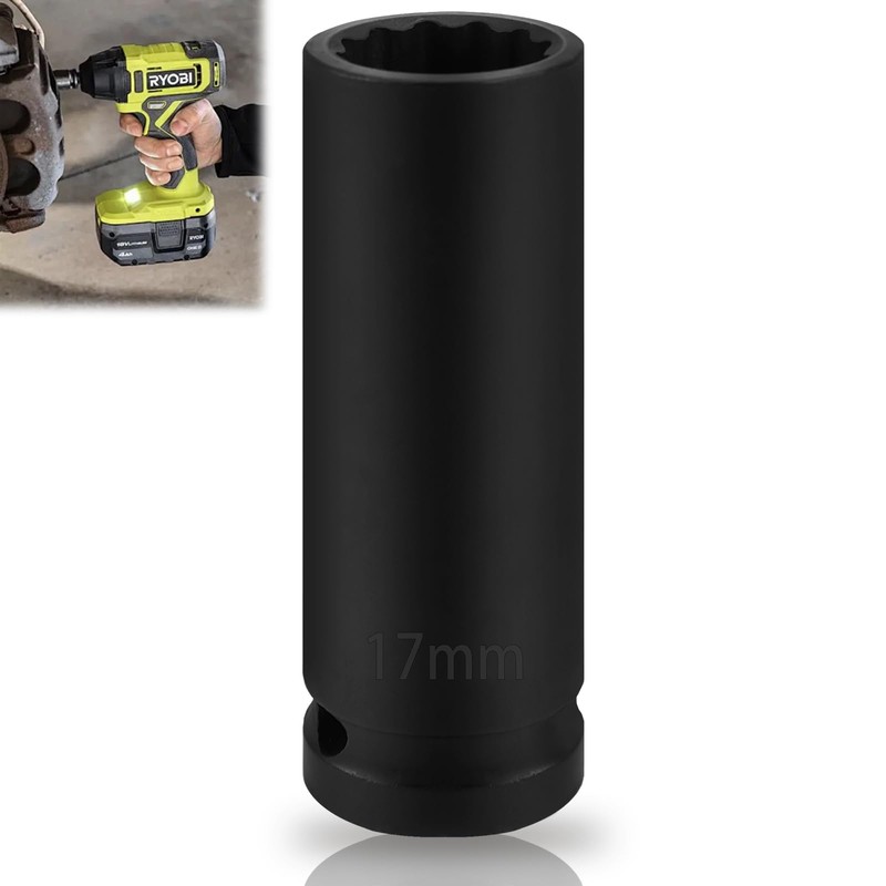 Raxfekro 17 mm nut 1/2 inch multi-tooth impact wrench, 12-edge, 12.5 mm (1/2 inch), CR-MO for easy removal of axle nuts