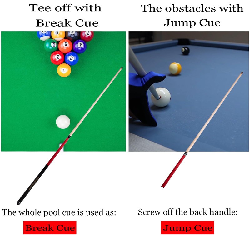 - Jump/Break Pool Cue with Double Quick-release Joints ,Make Sure Switch to Jump Cue Quickly.Easy to Pick it up or Removal