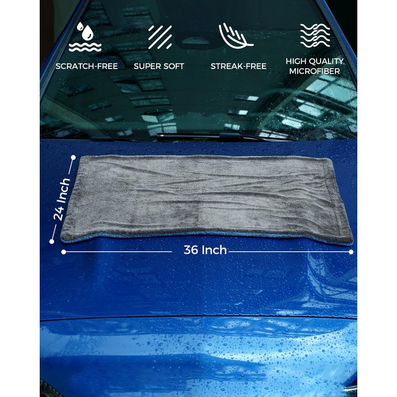 - 【COMPLETE CAR CEANING SOLUTION】: RAYBAO Car drying towel size is 24*36inch, 1400 high grams, easily dry a whole washed car in a short time. With proper maintenance, it can be reused hundreds of times, ideal for trucks, motorcycles, SUVs and more.