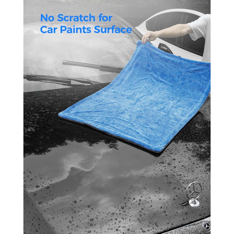 - 【EDGELESS DESIGN】: Our car wash and dry towel has an edgeless design that is safe for all car surfaces and won't leave any scratches. It will not leave lint or other marks while keeping the beauty, sturdy and washable.