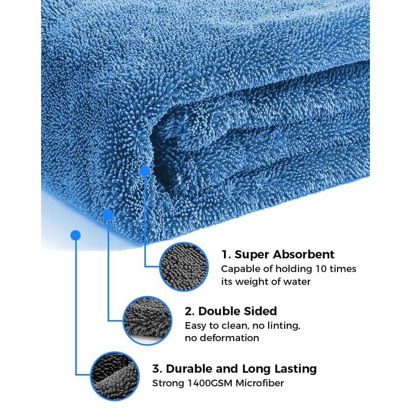 - 【SUPER ABSORBENT】: Throw away those light and poor quality towels, choose our super absorbent drying towel with double twist pile, absorbs more than 10 times its weight in water. With just one wipe, you can wipe your car windows crystal clear!