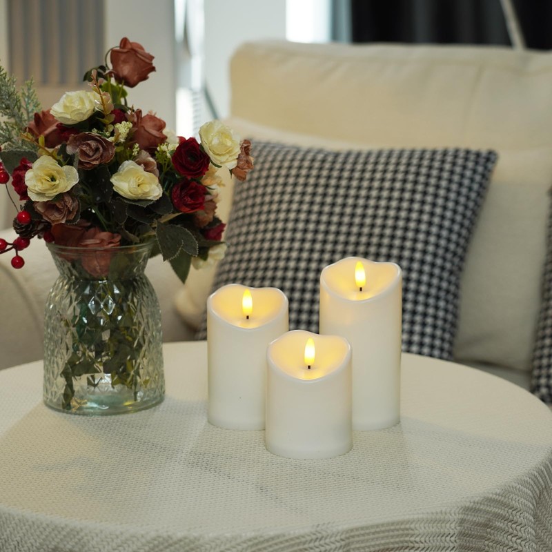 Raycare Outdoor Waterproof Flameless Candles, Battery Operated LED Candles with Remote Control and Timer, Electric Fake Plastic Pillar Candles, Ivory White, Set of 3