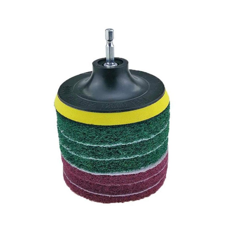 - 【What You Get】 In this 4'' drill brush set, including 5pcs non-scratch red pads, 5pcs non-scratch green pads, 1pc hook attachment with 1/4 inch (6mm) metal shaft.
