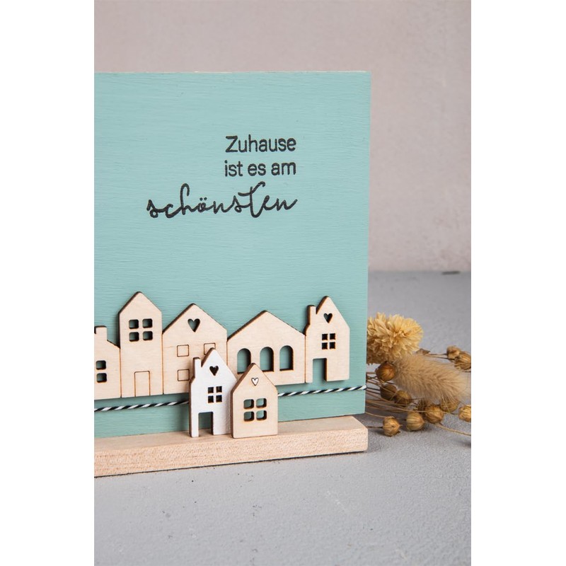 - 2 rows of wooden houses, different dimensions, 1 x 10.6 x 3.4 cm, 1 x 14.1 x 3.4 cm, thickness approx. 2 mm