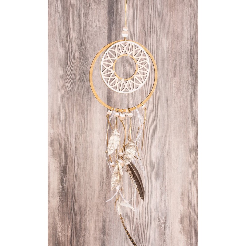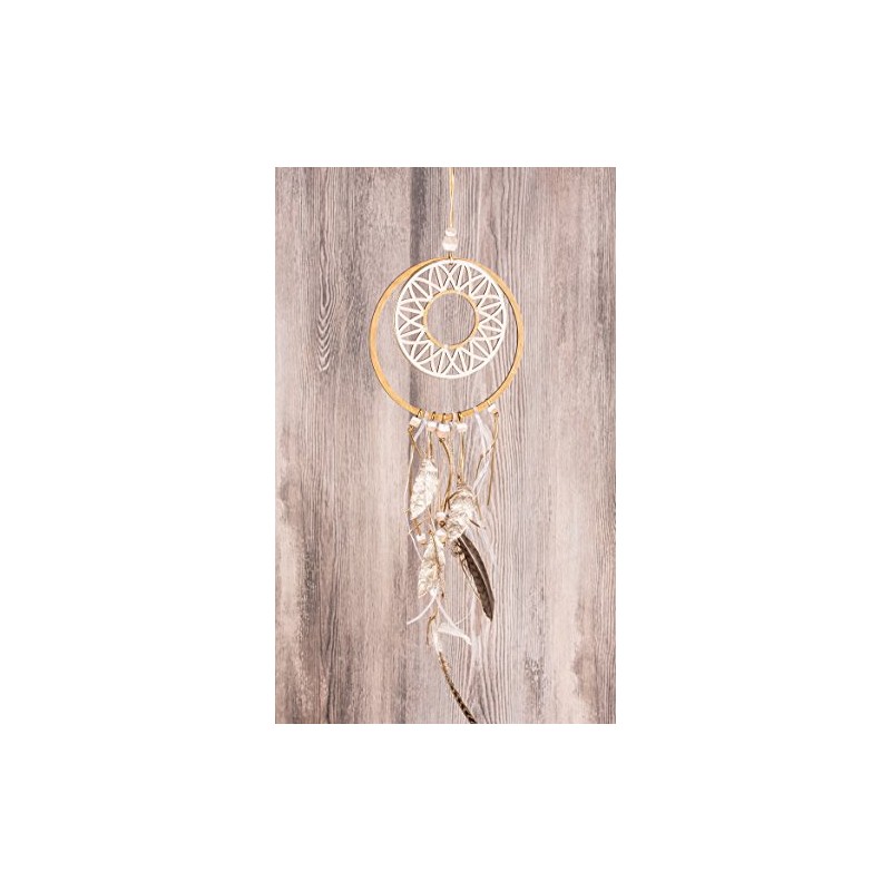 • For hanging beads, feathers, etc., we recommend a jute cord (ASIN B008KJH77M). The wooden disc is hung in the wooden ring