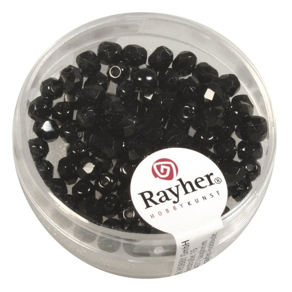Rayher Glas Schliffperle, 4mm ø, irisierend, schwarz, Dose 100 Stück, 14200576