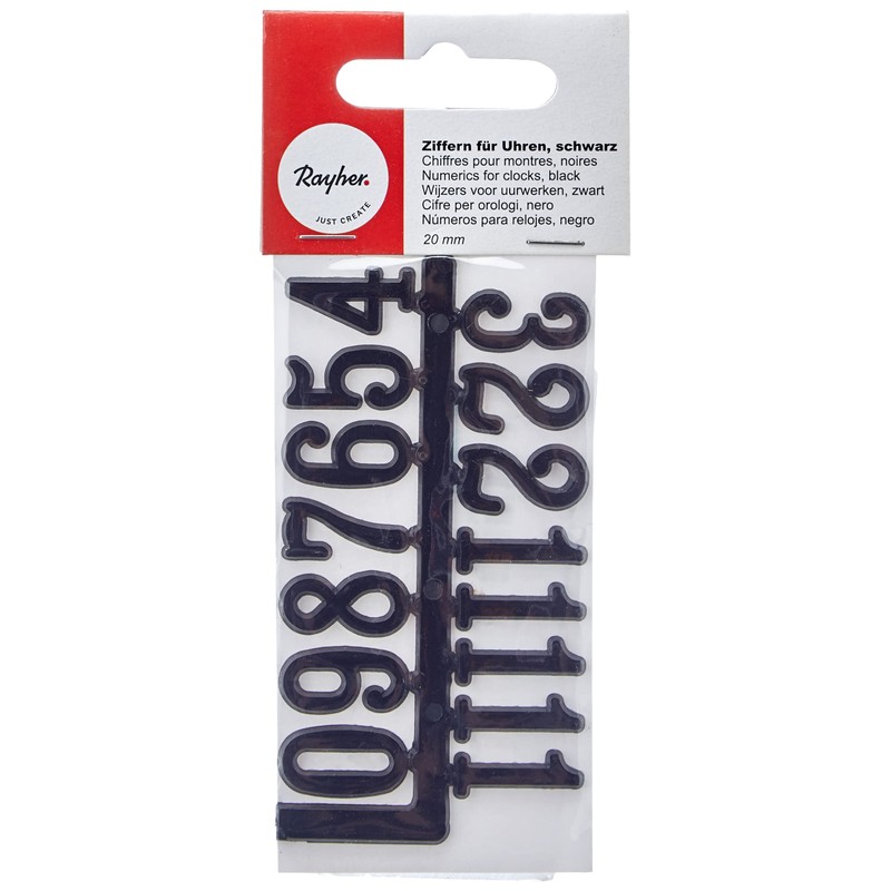 Rayher Uhrenziffern, schwarz, 20 mm, Kunststoff, selbstklebend, Ziffern für Uhren, Zahlen für Uhren, 8932200