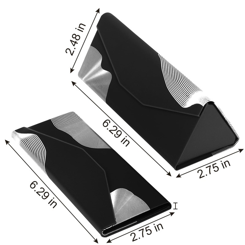 - Foldable Design:Triangular glasses case with magnetic folding design.Easy to store, can be folded into one piece when not in use.The magnetic closure design keeps the glasses case securely closed,and is easy to open and close.Stylish and protable, does not take up space, can be easily put into your purse or bag to carry and store. Perfect for daily use and traveling.