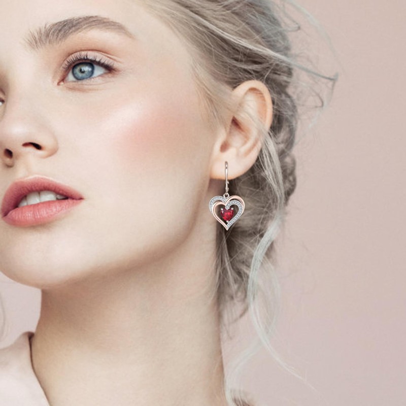 - Heart Earrings Size - 1.28"(32.5mm); set with 2 pieces 6x6mm heart-brilliant-cut 3A created ruby and 50 pieces 1mm round-brilliant-cut 3A cubic zirconia.