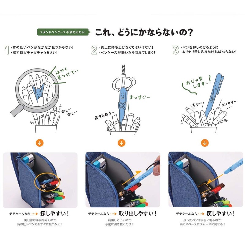 - Easy to use pen case with comfortable gimmick that tilts diagonally