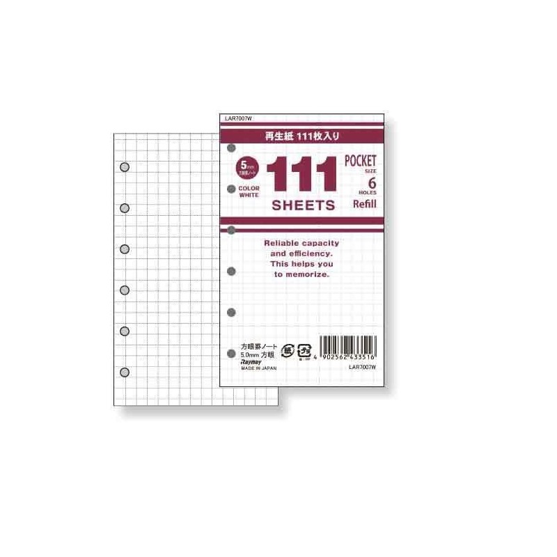 Raymei Fujii Personal Organizer, 111, Value Refill, Pocket, Square Ruled, Set of 2