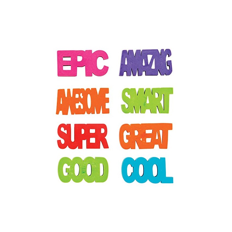 - Colorful Erasers: 3D erasers with positive quotes encourage students; designs include super, epic, amazing, cool, smart, awesome, good, and great in a variety of bright, eye-catching colors