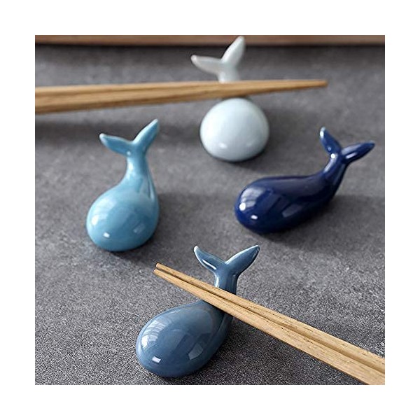 RAYNAG 4 Pack Dolphin-shaped Chopstick Holders Ceramic Fork/Spoon Rest Holder, Kitchen Dinning Table Decoration