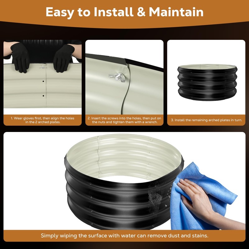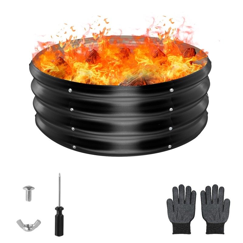 - Easy to Assemble and Maintain: Our round fire pit is equipped with 28 sets of screws, a pair of protective gloves and a screwdriver, which makes it easy for you to assemble and disassemble. The galvanized steel material is easy to clean and maintain. Simply wiping the surface with water can remove dust and stains, keeping the fire pit ring in good appearance.
