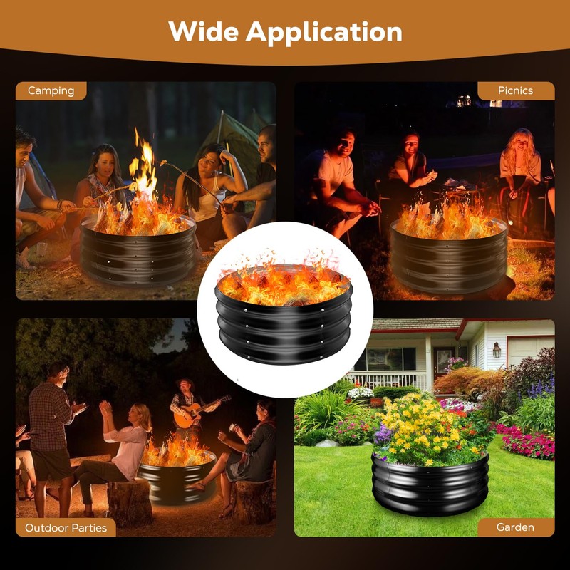 - Beautiful Appearance: The black galvanized coating gives the fire pit ring a fashionable and simple look, eye-catching and appealing. When used with other outdoor decorations, the fire pit ring can make your patio or backyard more beatiful.