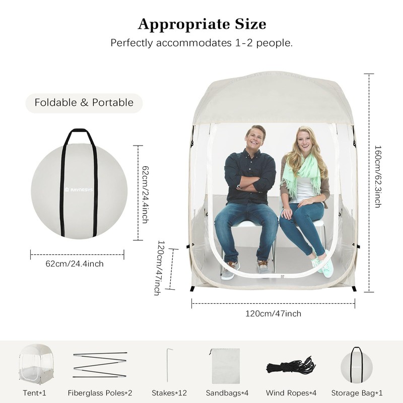 Raynesys Sports Tent for 1-2 Person, Instant Weather Proof Clear View Bubble Tent, Portable & Foldable Pop Up Tents Shelter with Carry Bag for Watching Sports Events, Camping, Fishing, Beige