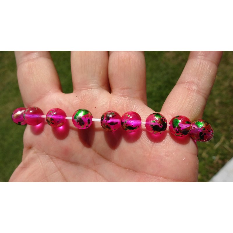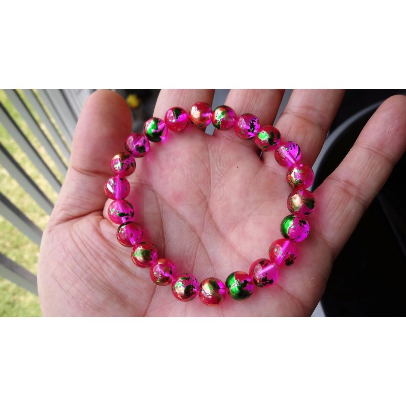 I'm selling a Pink Splash gemstone bead bracelet on stretch, Quad enforced. The bracelet is made with 22 beads - each 10mm in size.