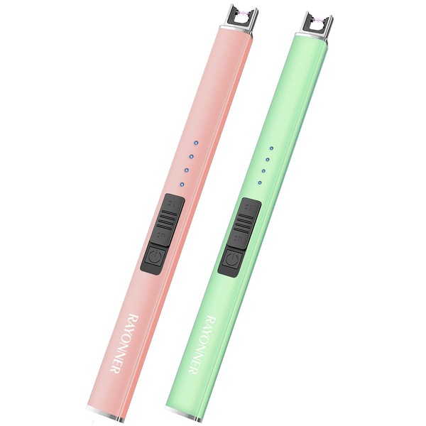 RAYONNER Lighter Electric Lighter Candle Lighter Rechargeable USB Lighter Arc Lighters (Rose Gold+Light Green, 1Count(Pack of 2))