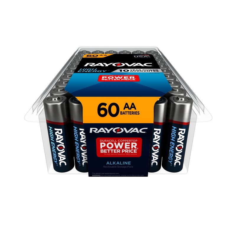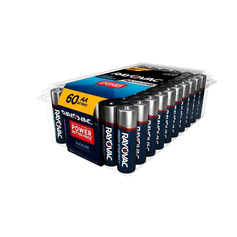 - 60 pack of Rayovac High Energy Alkaline AA Batteries, Batteries AA Size