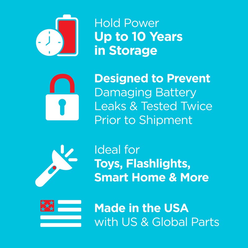 - These double A batteries are designed to prevent damaging leaks and made in the USA with US and global parts
