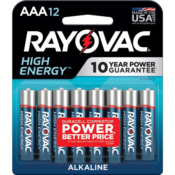 - 12 pack of Rayovac High Energy Alkaline AAA Batteries, Batteries AAA Size