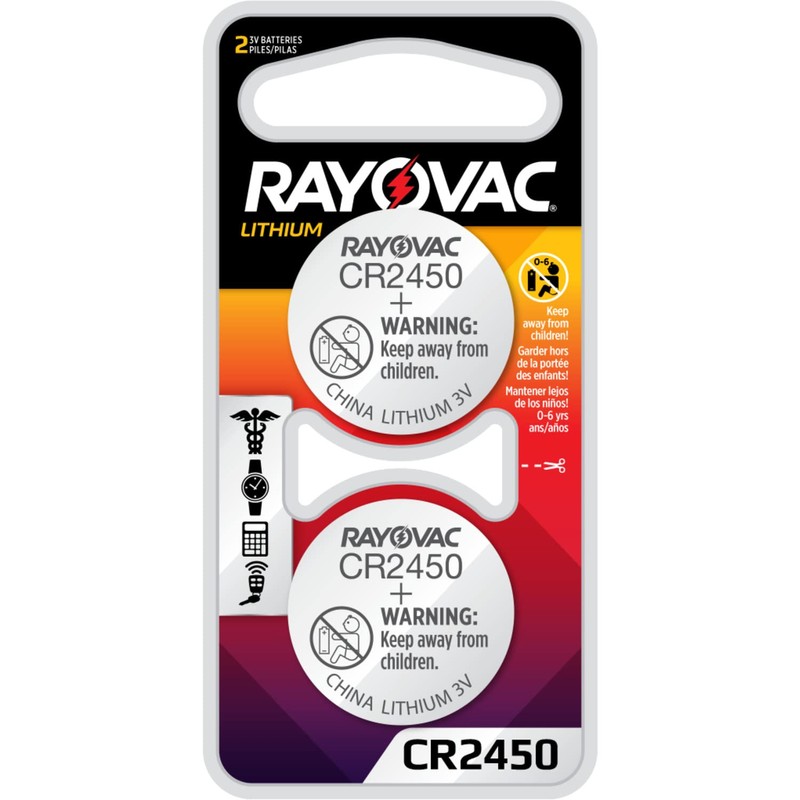 Rayovac CR2450 3V Batteries, 3 Volt Battery Lithium Coin, 2 Count
