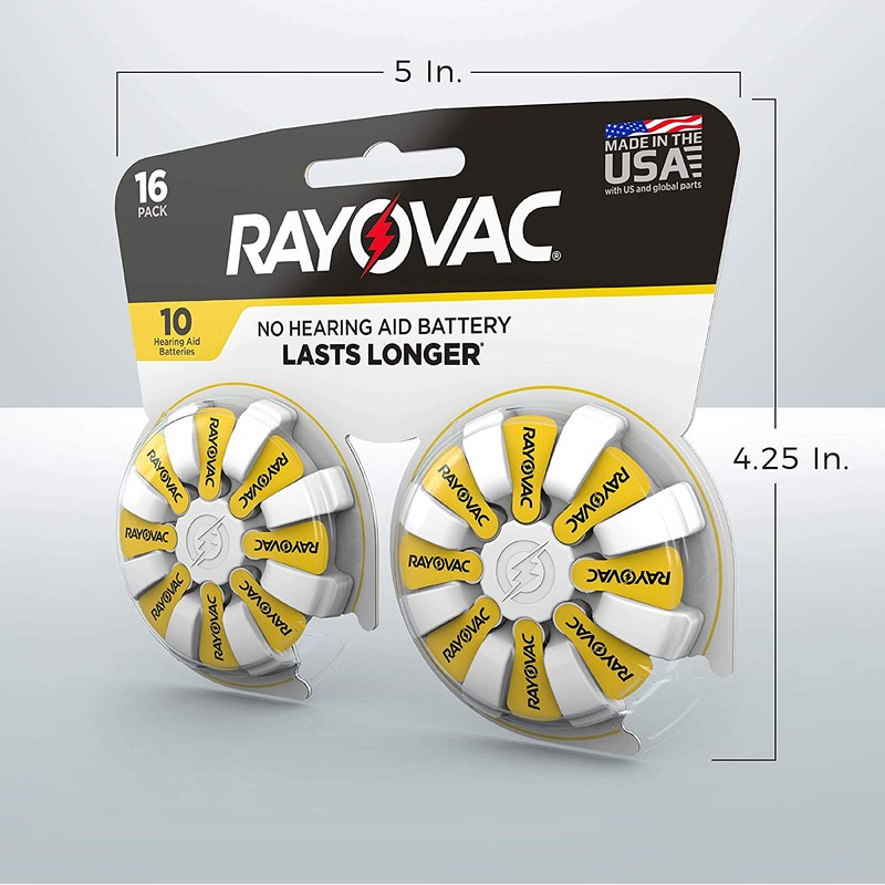 - 16 pack of Rayovac Size 10 Hearing Aid Batteries to power your listening device