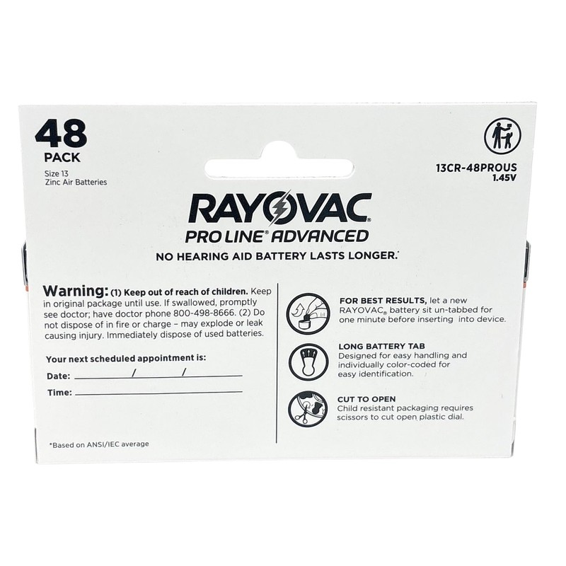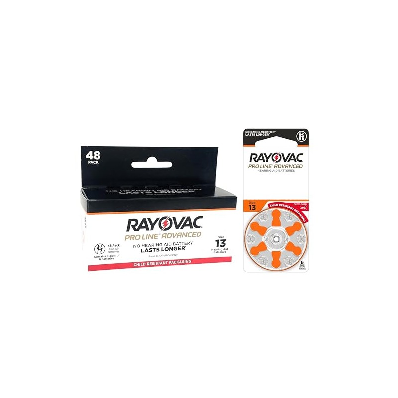Rayovac Proline Advanced Hearing Aid Batteries | Size 13 | World's Longest Lasting Battery | Child-Resistant Packaging (48)