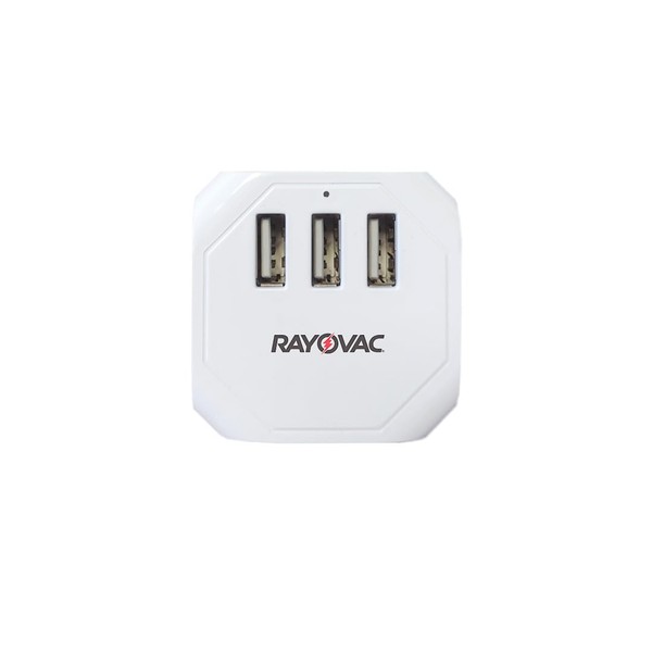 Rayovac Three Sided Surge Protector Cube with 3 Outlets & USB Ports (Smart 3A Total) ETL Certified Adapter for Home, School, or Office, White
